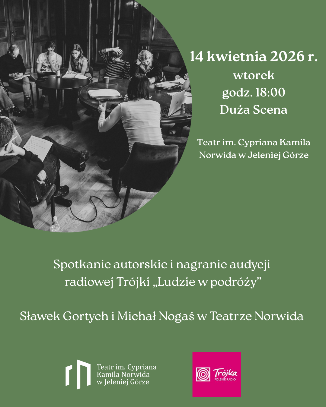 * Spotkanie autorskie i nagranie audycji radiowej Trójki „Ludzie w podróży” – Sławek Gortych i Michał Nogaś w Teatrze Norwida *